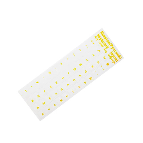 Наклейки на клавиатуру с русскими буквами (RU) фон прозрачный/буквы желтые